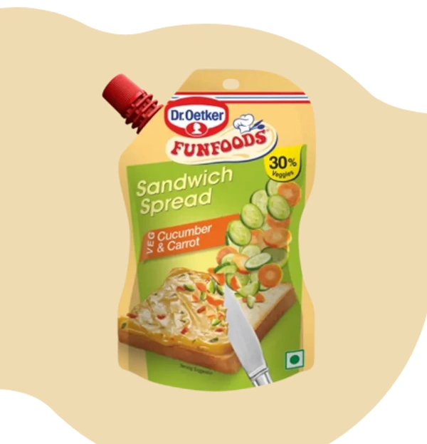 Dr. Oetker FunFoods is the *market leader in Sandwich Spreads and our Cucumber & Carrot is the *highest-selling Sandwich Spread SKU in India. It has the goodness of 30% vegetables in a deliciously creamy combination of tangy-tomatoes with crunchy bits of carrot and cucumber, giving you a crunch of vegetables in every bite! Perfect for making juicy sandwiches, subs, wraps and burgers.