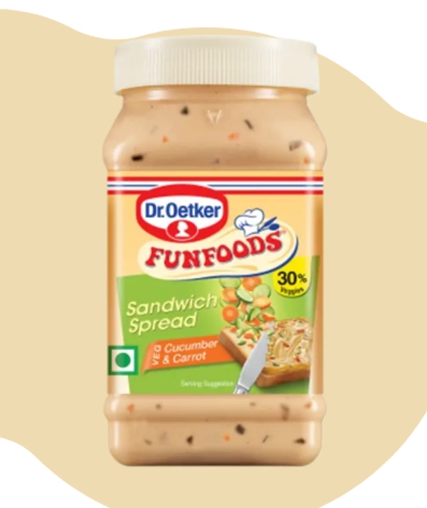 Dr. Oetker FunFoods is the *market leader in Sandwich Spreads and our Cucumber & Carrot is the *highest-selling Sandwich Spread SKU in India. It has the goodness of 30% vegetables in a deliciously creamy combination of tangy-tomatoes with crunchy bits of carrot and cucumber, giving you a crunch of vegetables in every bite! Perfect for making juicy sandwiches, subs, wraps and burgers.
